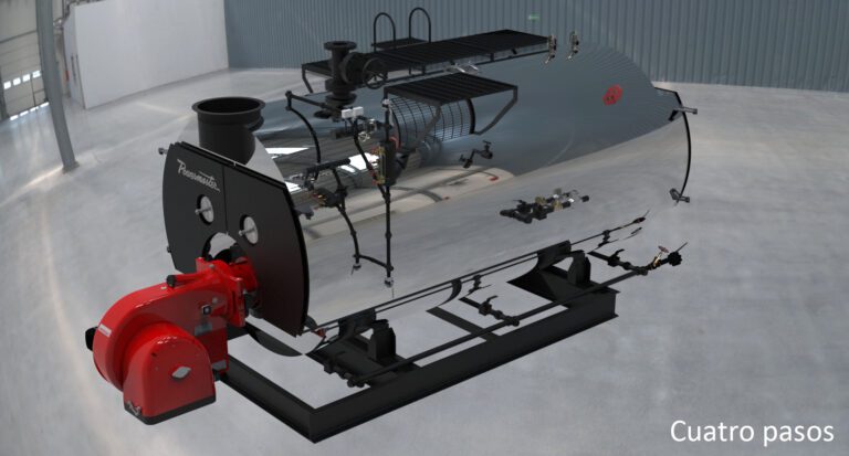 Una caldera de 4 pasos no tiene una mayor área de transferencia de calor que una de 3 pasos. No tiene mayor eficiencia y no tiene un menor consumo de combustible.
