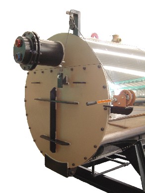 - Generador de agua caliente de tubos de humo de dos pasos, con intercambiador de calor integral (Instalado en el domo de vapor).